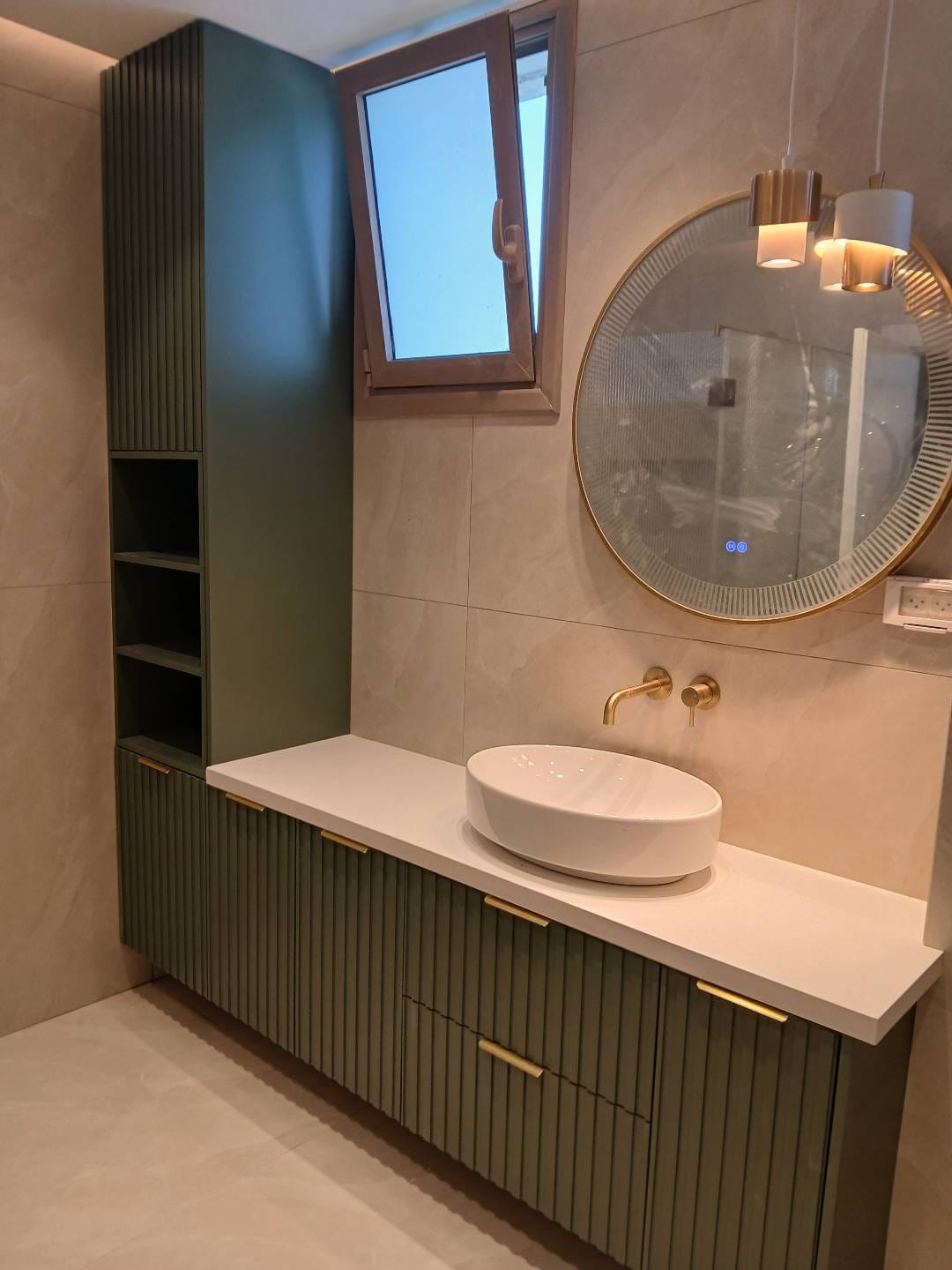 ארון חדר מקלחת בצבע ירוק עם חירוץ