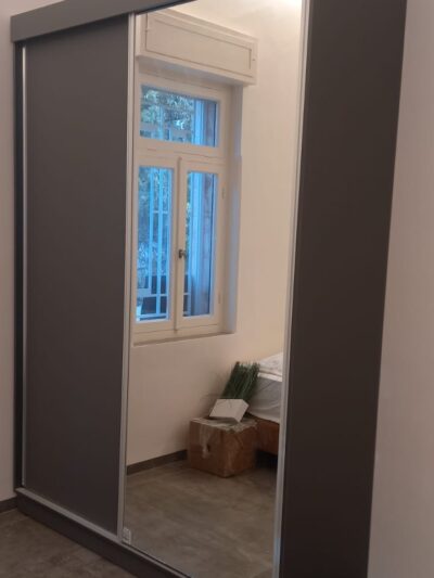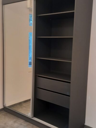 ארון הזזה 2 דלתות בציפוי פורמייקה בצבע אפור עם מראה