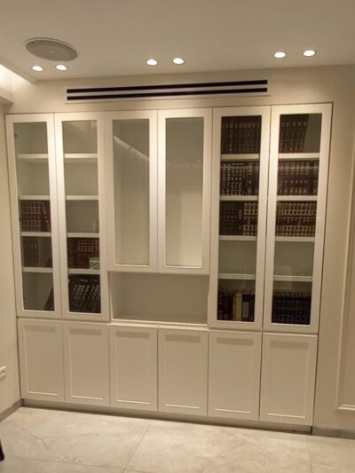 ספריית קודש 6 דלתות בציפוי פורמייקה עם תוספת ויטרינה