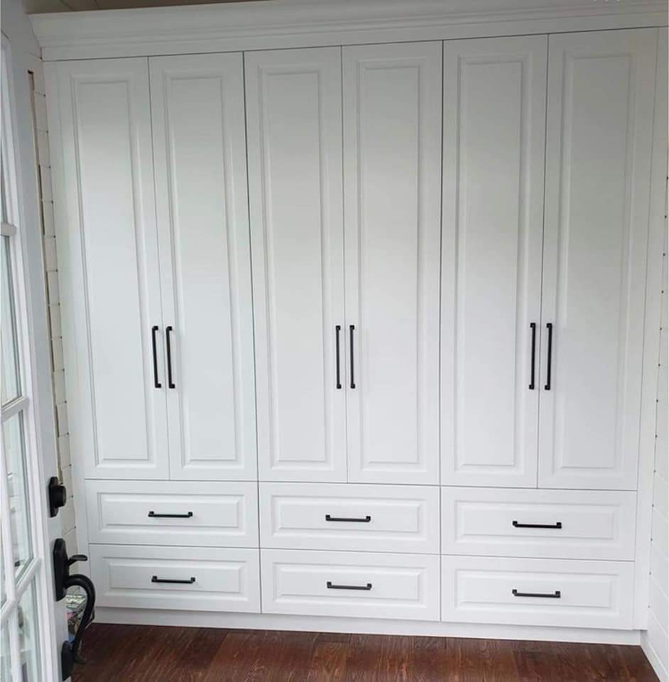 ארון 6 דלתות ומגירות בציפוי פורמייקה עם חירוץ וידיות שחורות